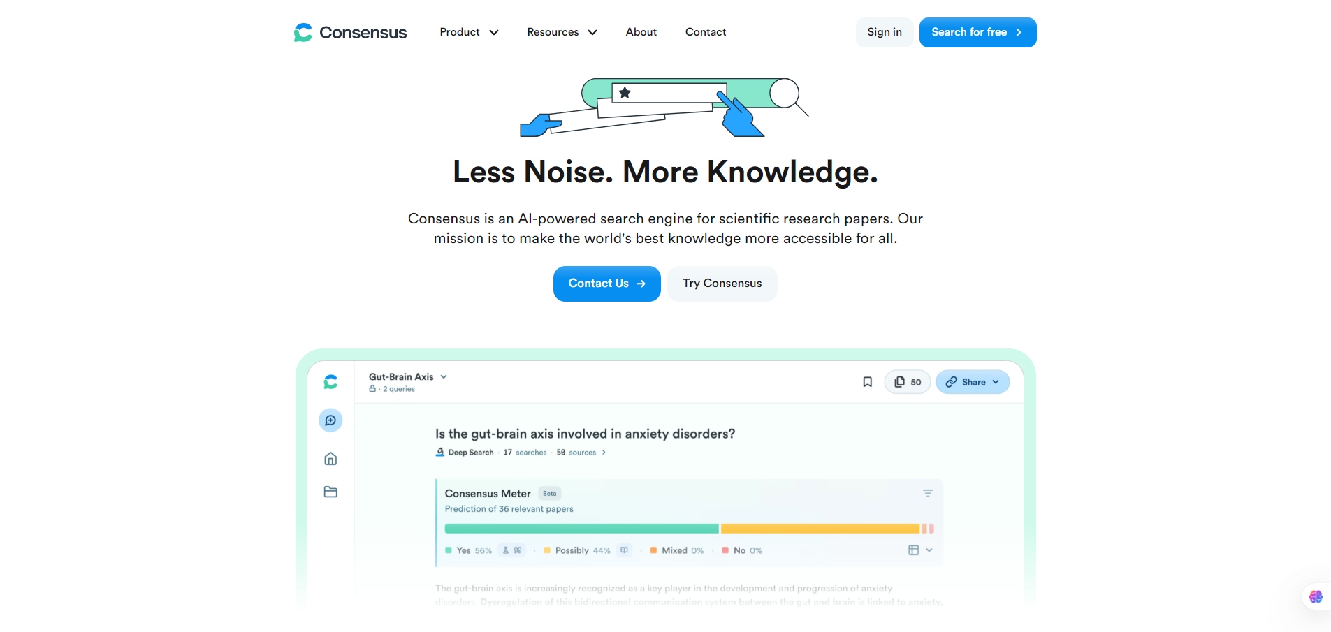 Consensus is an AI-powered academic search engine built to help users discover and synthesize scientific research literature. It goes beyond traditional search by providing summarizations rooted in real, peer-reviewed papers instead of generic web links.