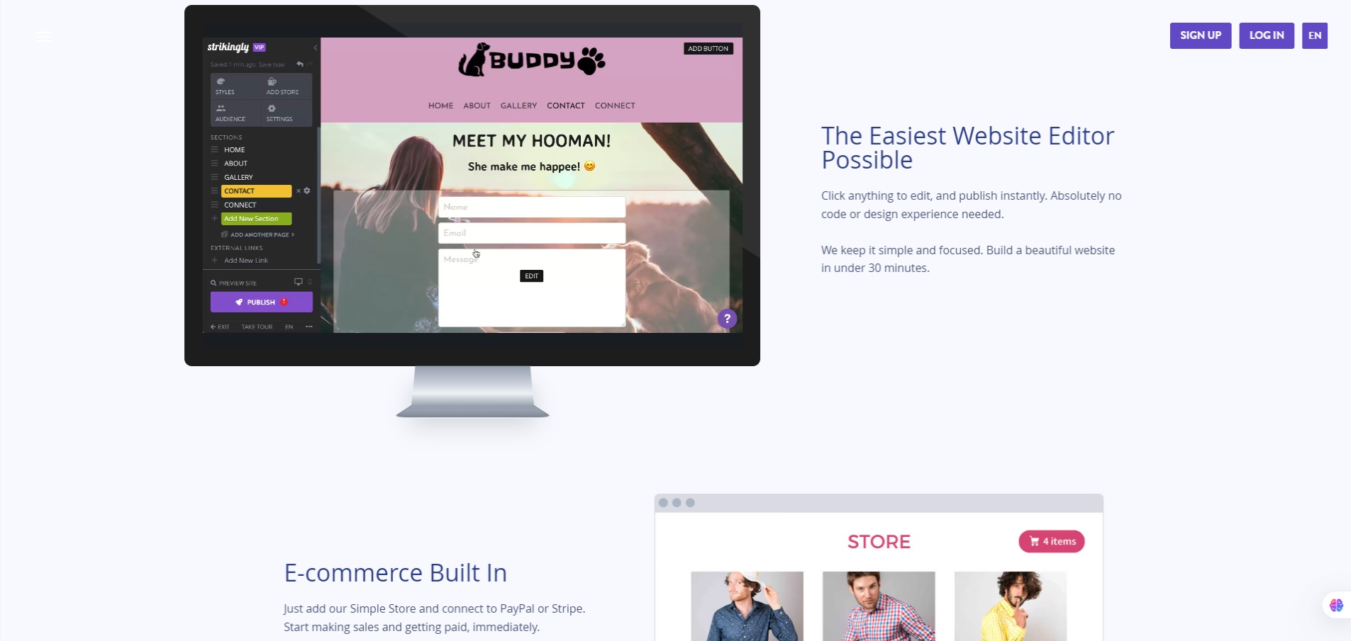 Strikingly is a no-friction website builder focused on speed and simplicity. You can build single-page or small multipage sites using drag-and-drop sections instead of a complex canvas editor. It’s aimed at creators, freelancers, and small businesses that want something easier than Wix or WordPress.